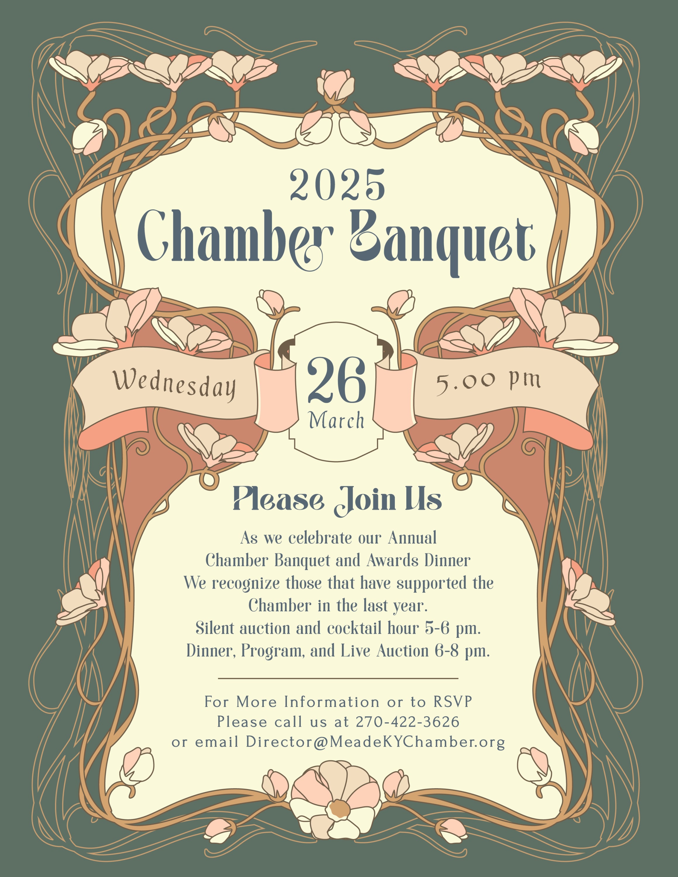 Join us for an evening of celebration at the Meade County Chamber of Commerce Awards Banquet! This special event honors outstanding businesses, organizations, and individuals who make a lasting impact on our community. Enjoy a night of networking, recognition, and inspiration as we highlight the achievements that drive Meade County forward.